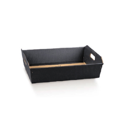 Bandeja en negro gofrado, con asas troqueladas, de material resistente