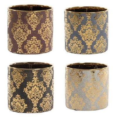 MACETA CERAMICA DECORADA BLANCA DIAM 12 x 12 cm ALTO