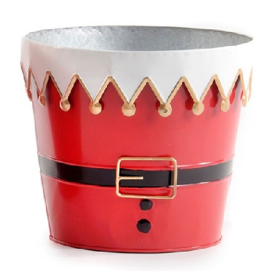 cubos metálicos con flores navideñas, asas metálicas recubiertas de madera